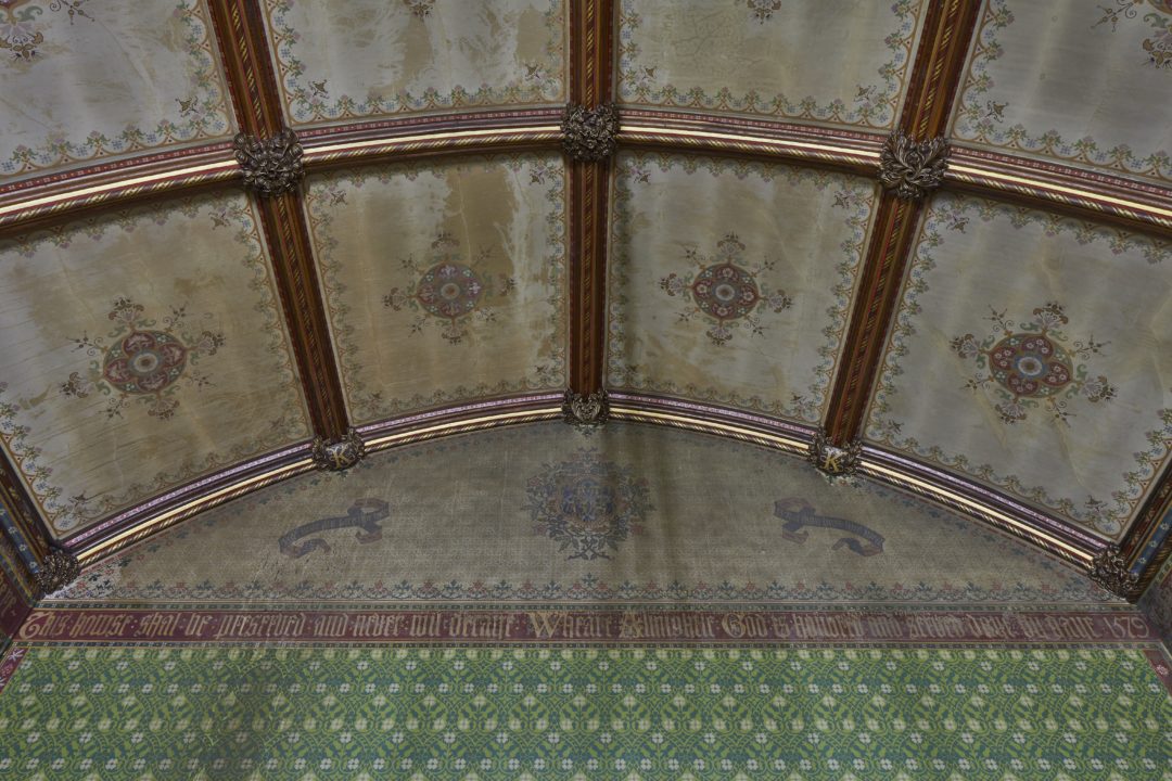 The focus of the conservation treatment is a mainly extant Gothic Revival decorative scheme by the firm of J. G. Crace, employing decorative designs by A. W. N. Pugin. Elements of the scheme survive in the Lobby Hall, Octagonal Hall, Drawing Room, Inner Hall and Library. The Dining Room is considered to be late Victorian or early Edwardian.