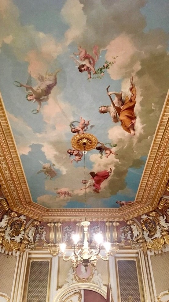 The ceiling painting, according to Pevsner, is most likely the work of John Gregory Crace who was the fourth generation of a very creative family of decorators. Our conservation treatment of the ceiling is to be completed by the end of December 2017. Interestingly, we are working on two Crece decorative schemes at the moment.