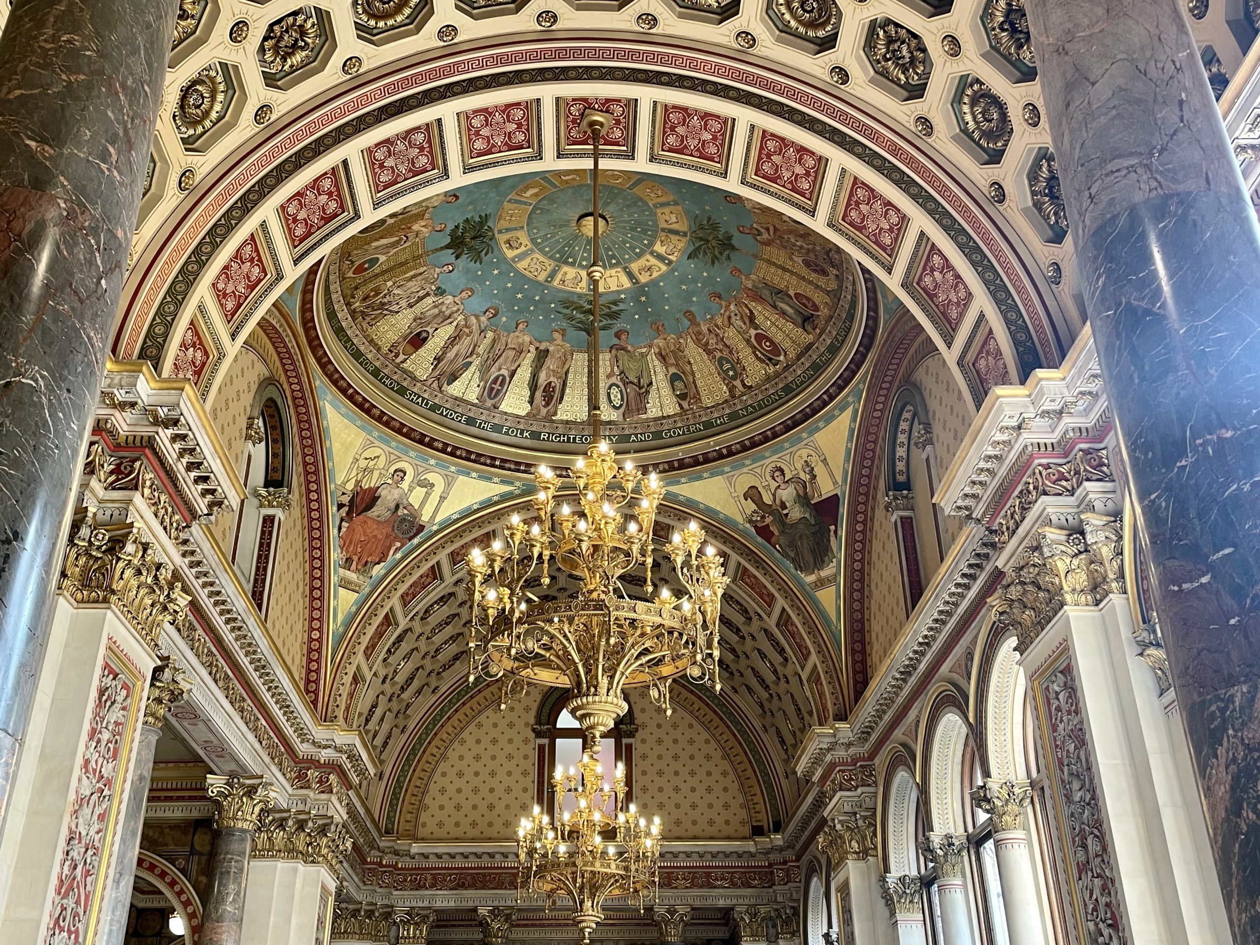 After several months of work, we now completed conservation treatment of this wonderful dome and spandrels above the Grand Staircase in one of the stunningly opulent interiors of Whitehall.